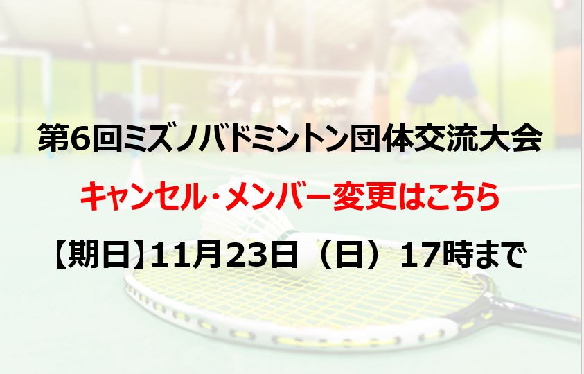 第6回ミズノバドミントン団体交流大会 【初級クラス】会員¥15,000-